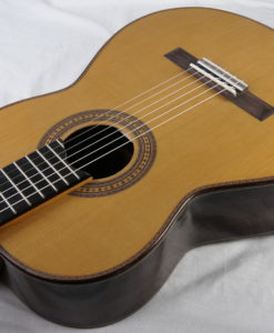 Die Doppeldecken des Geigenbauers Alexander Pashentsev bestehen aus Decken, bei denen zwei Schichten Zedernholz miteinander verleimt sind. Dies verleiht der Decke eine größere Festigkeit, ohne dass Verbundmaterialien wie Nomex verwendet werden. Das Ergebnis ist eine sehr holzige, traditionelle Klangfarbe mit einer Dynamik, die der einer traditionellen Gitarre ähnelt, aber mehr Kraft hat. Die Doppeldecke ermöglicht die Verwendung einer leichteren Zarge aus Halbmond. Im Gegensatz zu den früher verkauften Doppeldecken enthält diese Doppeldecke doppelte Saiten, die die Dicke und das Sustain der Noten erhöhen. Die Geigenbaukunst ist perfekt und das Spielvergnügen mit einer schönen Klangdicke. Nahezu perfekte Qualität zu einem günstigen Preis.