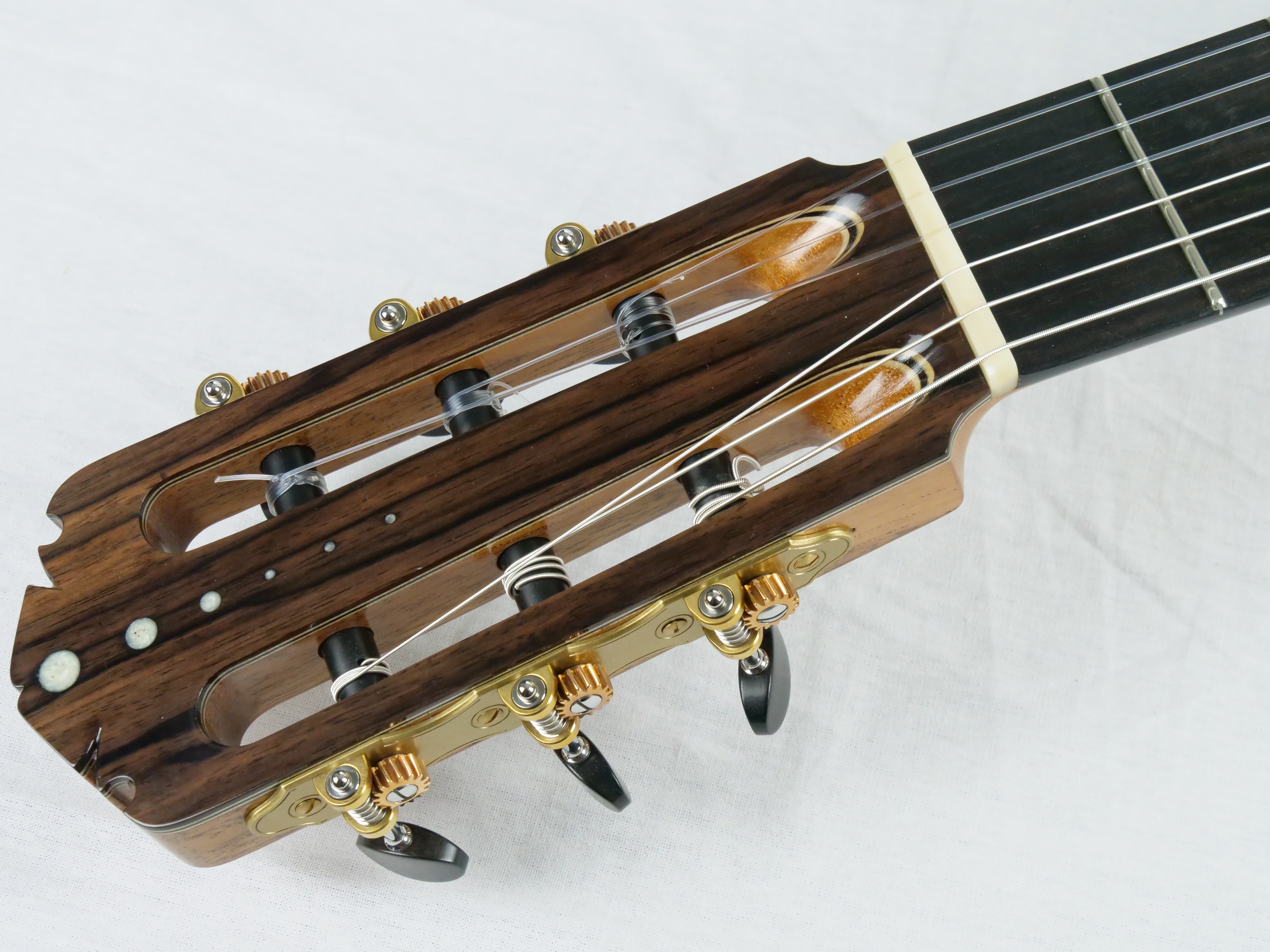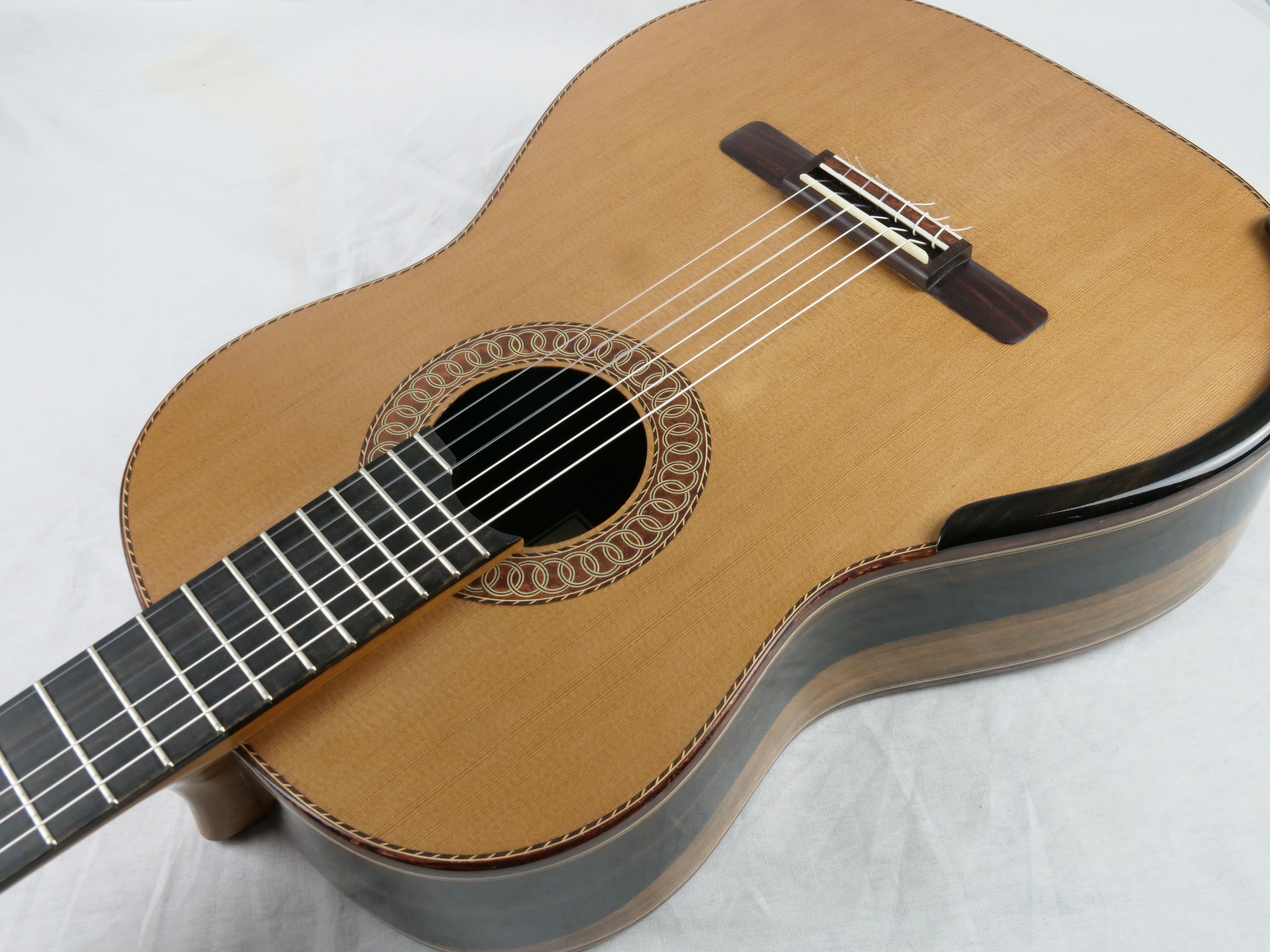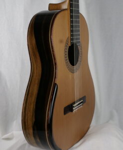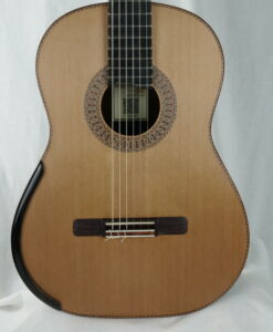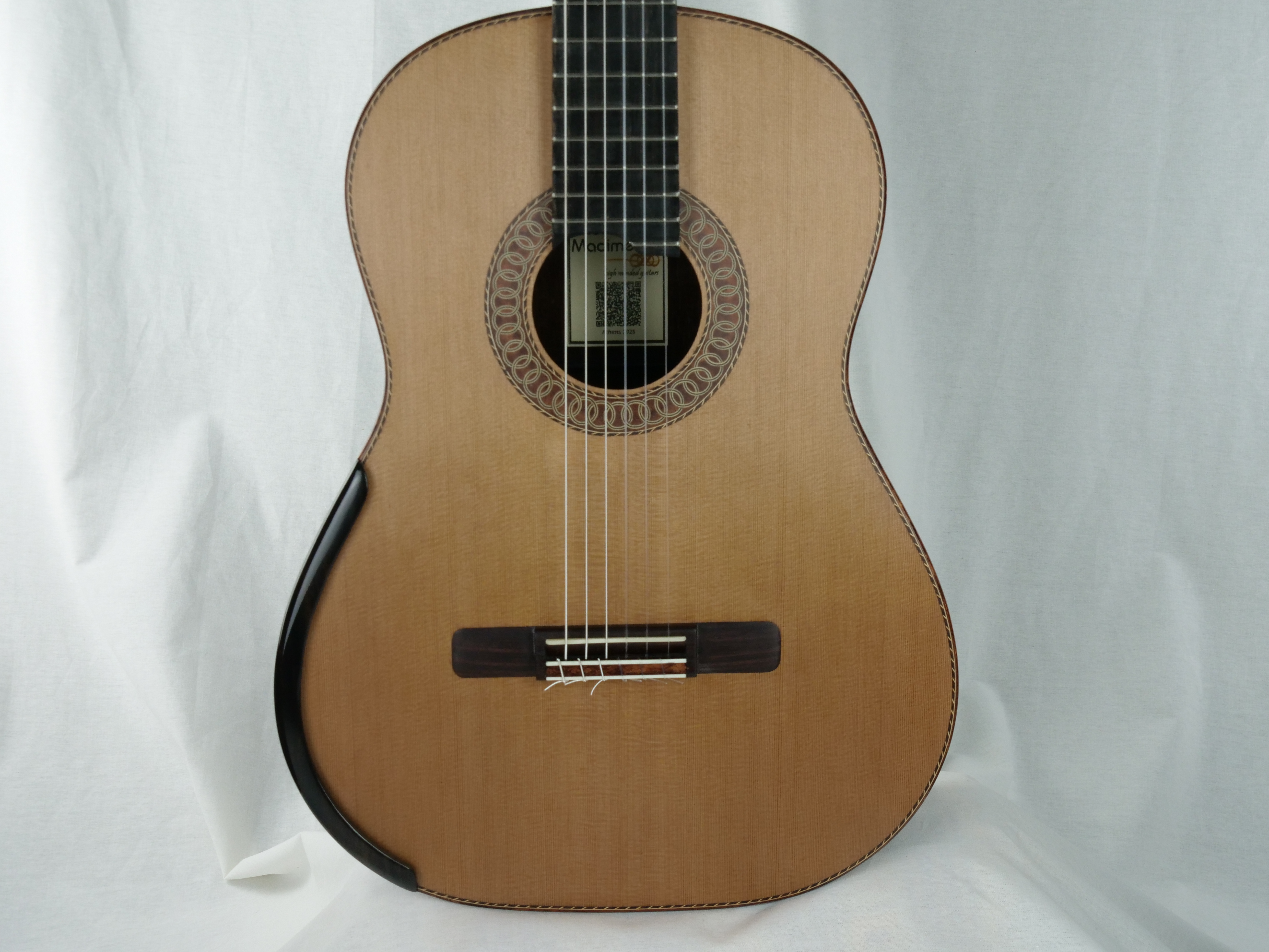 Mit der neuen Nr. 77 setzt Andreas Madimenos die Verbesserungen seines leistungsstarken Gitarrenkonzepts fort. Die neue Nr. 77 bietet einen natürlicheren Klang, aber mit einer unvergleichlich dicken Note. Zu den dicken Noten kommen warme harmonische Resonanzen hinzu. Die Länge der Noten ist endlos. Andreas Madimenos ist ein griechischer Gitarrenbauer, dessen Gitarren sich mit den besten australischen Gitarren messen können. Seine Gitarren sind keine Kopien, sondern orientieren sich nur an einigen Prinzipien. Das Ergebnis ist eine sehr schöne Gitarre mit einer runden, weichen Klangfarbe, die sowohl dem Konzertmusiker als auch dem Amateur gefallen wird. Die Variationen in Klangfarbe und Lautstärke sind erstaunlich und erfreuen den Spieler. Zusätzlich zur Rezension finden Sie einen Vergleich mit einer Smallman, der mit einer früheren Gitarre von Andreas durchgeführt wurde.