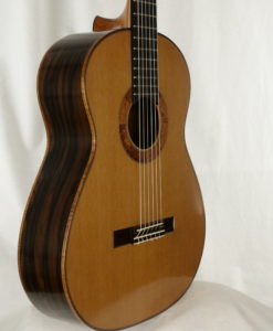 « Ich bevorzuge die Lattendecke, weil ich glaube, dass sie so hergestellt werden kann, dass sie die gewünschten Eigenschaften der Fächerdecke mit den zusätzlichen Vorteilen des Gitarrengeflechts verbindet und einen Klang erzeugt, der eher zu einer heutigen Konzertgitarre passt. Mit zunehmender Anzahl von Gitarren entdecke ich die Effektivität und Vielseitigkeit des Gitarrenfachwerks und ich denke, dass es noch viel über diesen Barré-Stil zu lernen gibt.
