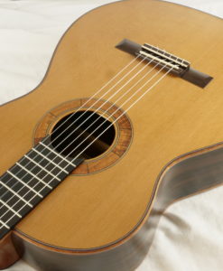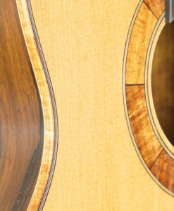 Ich glaube, dass ein solider, hochwertiger Resonanzboden das Beste aller Attribute bieten wird, die in der gewählten Essenz gesucht werden. Das ergibt eine Gitarre mit einer echten natürlichen Stimme, die sich mit jahrelangem Spielen öffnen wird ».