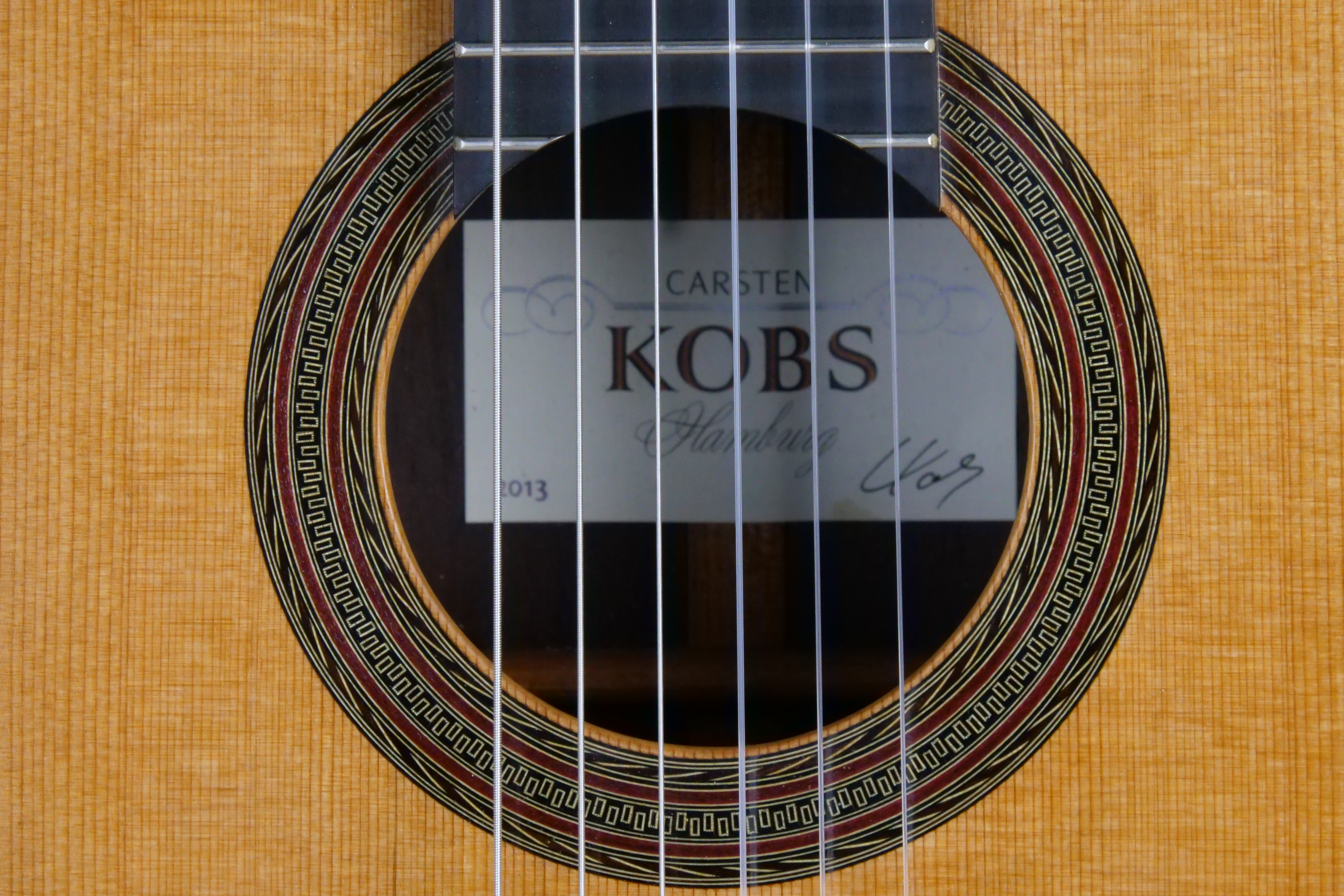 Die Doubletop Gitarren von Carsten Kobs gehören aufgrund ihres herrlichen Klangs zu den begehrtesten Gitarren und werden von großen Konzertgitarristen wie Aniello Desiderio, Manuel Barrueco, Zoran Dukic und David Russell gespielt. Die Wartezeit bei Carsten beträgt mehr als 7 Jahre. Hier bietet sich eine außergewöhnliche Gelegenheit, eine neuwertige Carsten-Gitarre aus dem Jahr 2013 zu erwerben. Alles, was den Erfolg von Carstens Gitarren ausmacht, war bereits 2013 vorhanden: Kraft, kristallklarer Klang, Definition und Stimmtrennung. Eine einmalige Gelegenheit!