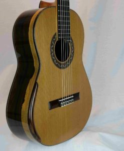 Charalampos Koumridis ist ein griechischer Gitarrenbauer, der ganz erstaunliche innovative Konzertgitarren baut. Was er erreichen möchte ist eine besondere Musikalität. Charalambos Koumridis ist mit Sicherheit unsere große Entdeckung des Jahres 2017. Wir dachten zuvor, alle ‘großen’ europäischen Gitarrenbauer zu kennen, bis wir dann Charalampos Koumridis entdeckt haben, ein Gitarrenbauer, der sowohl klassische Instrumente von bester Qualität baut, als auch Double-Top- und Lattice-Gitarren. Alle seine Instrumente sind außergewöhnlich in ihrer Klangqualität und in ihrer Musikalität. Charalambos gelingt es, typische Doubletop- und Lattice-Klänge verschwinden zu lassen und ausschließlich die Stärke des Klangs zu behalten. Bei dieser Gitarre n°138 handelt es sich um eine Lattice, die von den australischen Greg Smallmanns inspiriert ist. Das Ergebnis ist wunderbar rund, mit großer Klangbreite und ohne den etwas ‘kartonartigen’ Klang mancher Smallmans in den Tiefen zu haben. Schauen Sie sich das Video mit dem Test an, Sie werden es nicht bereuen.