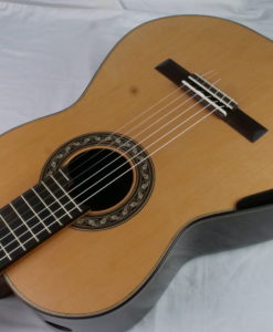 Charalampos Koumridis baut wunderschöne Lattice- und Double-Table-Gitarren. Er baut auch traditionelle Gitarren, für die er in Griechenland berühmt ist. Hier ist eine Sonderausgabe seines traditionellen Gitarrenbaus, der jedoch einige Elemente des Lattice-Gitarrenbaus aufweist. Die Gitarre ist kraftvoll, hat aber einen traditionellen Klang. Entdecken Sie die Gitarre als Vorpremiere!