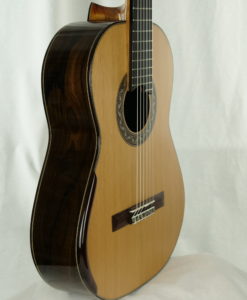 Die Gitarre Nr. 235 wurde auf der Grundlage der neuen Latte von Charalampos Koumridis hergestellt (wie die Nr. 211 und 204). Leichter mit noch dickeren Noten. Mehr Dynamik mit einer traditionellen Farbe. Die Trennung der Stimmen ist beeindruckend. Die früheren Lattice von Charalampos waren magisch, diese ist wunderschönSeit einiger Zeit wollte Charalampos einige ziemlich große Änderungen an der Struktur und den Materialien, die innerhalb seiner Lattice verwendet werden, testen. Das Ergebnis ist atemberaubend und Charalampos hat den Weg für eine neue Generation von Gitarren geebnet, die musikalischer sind und dem Gitarristen keine Grenzen setzen.Charalampos Koumridis ist ein griechischer Gitarrenbauer, der innovative, innovative Latte- und Doppeldecker-Konzertgitarren mit dem Ziel der Musikalität herstellt. Charalampos Koumridis ist zweifellos unsere Entdeckung 2017.Während wir dachten, alle « großen » europäischen Gitarrenbauer zu kennen, entdeckten wir Charalampos Koumridis, einen Gitarrenbauer, der sowohl hochklassige traditionelle Gitarren als auch Doppeldecker und Lattengitarren herstellt. Alle seine Gitarren sind überraschend musikalisch. Charalampos gelingt es, die typischen Klänge von Double-Table- und Lattice-Gitarren « auszulöschen », um nur die zusätzliche Kraft und die Musikalität zu erhalten. Diese Gitarre Nr. 235 ist eine Lattice, die von Greg Smallmanns australischen Gitarren inspiriert wurde, jedoch mit erheblichen Unterschieden in der Struktur und den Materialien. Das Ergebnis ist ein runder, weiträumiger Klang ohne die etwas « kartonartige » Basswiedergabe einiger Smallmann-Gitarren. Im Gegensatz zu einigen australischen Lattenrohren bieten die von Charalampos einen eher traditionellen Klang, aber mit einer unendlichen Fülle und einem unendlichen Sustain. Wir warten noch auf einige biografische Angaben von Charalambos, und in der Zwischenzeit hier einige technische Details zu dieser Gitarre: