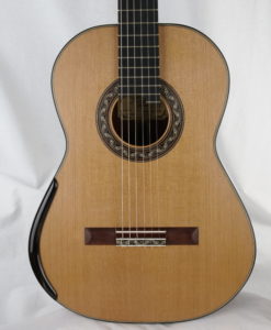 Charalampos Koumridis ist ein griechischer Gitarrenbauer, der erstaunlich innovative und innovative Konzertgitarren mit einem Fokus auf Musikalität baut, im Gegensatz zu deutschen Gitarren mit verleimten Zargen (wie bei der Friederich) und einer Balsaholzdecke, um dem Ganzen einen Hauch von Brillanz zu verleihen. Charalampos Koumridiis ist zweifellos unsere Entdeckung 2017.Während wir dachten, alle « großen » europäischen Gitarrenbauer zu kennen, entdeckten wir Charalampos Koumridis, einen Gitarrenbauer, der sowohl hochklassige traditionelle Gitarren als auch Doppeldecker und Lattengitarren baut. Alle seine Gitarren sind überraschend musikalisch, Charalampos gelingt es, die typischen Klänge von Double-Table- und Lattice-Gitarren « auszulöschen » und nur die zusätzliche Kraft und Musikalität zu erhalten.Hier einige technische Details zu dieser Gitarre: