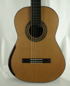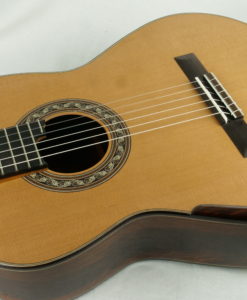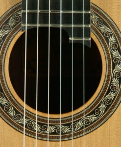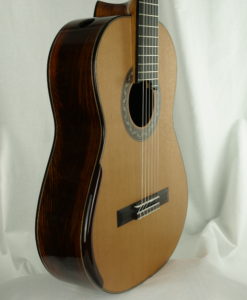 Charalampos Koumridis ist ein griechischer Gitarrenbauer, der erstaunlich innovative und innovative Konzertgitarren mit einem Fokus auf Musikalität baut, im Gegensatz zu deutschen Gitarren mit verleimten Zargen (wie bei der Friederich) und einer Balsaholzdecke, um dem Ganzen einen Hauch von Brillanz zu verleihen. Charalampos Koumridiis ist zweifellos unsere Entdeckung 2017.Während wir dachten, alle « großen » europäischen Gitarrenbauer zu kennen, entdeckten wir Charalampos Koumridis, einen Gitarrenbauer, der sowohl hochklassige traditionelle Gitarren als auch Doppeldecker und Lattengitarren baut. Alle seine Gitarren sind überraschend musikalisch, Charalampos gelingt es, die typischen Klänge von Double-Table- und Lattice-Gitarren « auszulöschen » und nur die zusätzliche Kraft und Musikalität zu erhalten.Hier einige technische Details zu dieser Gitarre: