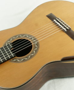 Charalampos Koumridis ist ein griechischer Gitarrenbauer, der erstaunlich innovative und innovative Konzertgitarren mit einem Fokus auf Musikalität baut, im Gegensatz zu deutschen Gitarren mit verleimten Zargen (wie bei der Friederich) und einer Balsaholzdecke, um dem Ganzen einen Hauch von Brillanz zu verleihen. Charalampos Koumridiis ist zweifellos unsere Entdeckung 2017.Während wir dachten, alle « großen » europäischen Gitarrenbauer zu kennen, entdeckten wir Charalampos Koumridis, einen Gitarrenbauer, der sowohl hochklassige traditionelle Gitarren als auch Doppeldecker und Lattengitarren baut. Alle seine Gitarren sind überraschend musikalisch, Charalampos gelingt es, die typischen Klänge von Double-Table- und Lattice-Gitarren « auszulöschen » und nur die zusätzliche Kraft und Musikalität zu erhalten.Hier einige technische Details zu dieser Gitarre: