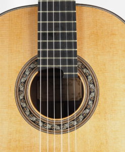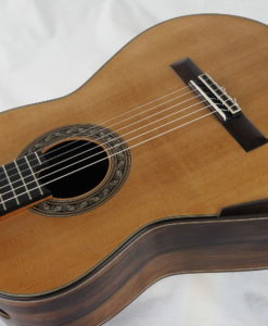 Wir haben soeben zwei Double-Top Meistergitarren des Gitarrenbauers Charalamapos Koumridis erhalten: Nr. 103 aus Cocobolo und Nr. 104 aus Palisanderholz aus Madagaskar. Bei der Gitarre Nr. 104 handelt es sich um eine Double-Top Zeder/Nomex/Zeder mit außergewöhnlichem Palisander massiv aus Madagaskar. Diese Gitarre befindet sich in makellosem Zustand und weist ein großzügiges Klangspektrum auf. Neben einer einwandfreien Verarbeitung, einem kräftigen, „gewichtigen“ und cremigen Timbre, bietet diese Meistergitarre einen perfekt ausgewogenen Klang aus Rundheit und Klarheit. Die Koumridis‘ Modelle sind das Resultat seiner Forschung und in keiner Weise Kopien der deutschen Double-Tops. Der Korpus aus Madagaskar-Palisander ist etwas runder als jener aus Cocobolo.