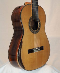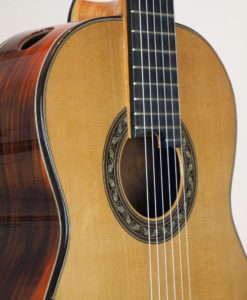 Wir haben soeben ein Double-Top Meistergitarren des Gitarrenbauers Charalamapos Koumridis erhalten: Nr. 149 aus Cocobolo. Der Gitarre Nr. 149 handelt es sich um eine Double-Top Zeder/Nomex/Zeder mit außergewöhnlichem Cocobolo. Diese Gitarre befindet sich in makellosem Zustand und weist ein großzügiges Klangspektrum auf. Neben einer einwandfreien Verarbeitung, einem kräftigen, „gewichtigen“ und cremigen Timbre, bietet diese Meistergitarre einen perfekt ausgewogenen Klang aus Rundheit und Klarheit. Die Koumridis‘ Modelle sind das Resultat seiner Forschung und in keiner Weise Kopien der deutschen Double-Tops. Der Korpus aus Madagaskar-Palisander ist etwas runder als jener aus Cocobolo.