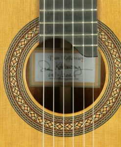 Dan Kellaways letzte Konzertgitarre mit einer Zederndecke blieb nur ein paar Wochen. Auch die neue Konzertgitarre wird nicht lange bleiben. Das Ziel des Gitarrenbauers Dan Kellaway ist es, Konzertgitarren zu bauen, die einen echten Kompromiss zwischen den Gitarren von Greg Smallman und den Gitarren von Simon Marty darstellen. Nur traditionelle Materialien – kein Karbon, kein Balsa.