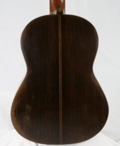 Wir wurden mehrfach gebeten, Daniel-Friederich-Fichten zu katalogisieren. Sie sind sehr selten und die meisten von ihnen wurden vor 1970 gebaut. Viele von ihnen sind in schlechtem Zustand, gewissermaßen ausgehöhlt oder mit zu vielen Modifikationen, die die Gitarre zu sehr verändert haben. Hier ist eine Daniel Friederich aus dem Jahr 1963 in sehr gutem Zustand. Nur ein Besitzer hat die Gitarre von Daniel Friederich gekauft. Die Gitarre hat eine wunderschöne Fichtendecke und dunkles südamerikanisches Palisander für den Boden und die Zargen. Diese Nummer 111 hat einen rund geformten Hals, der überraschend bequem ist. Das Wichtigste ist, dass die Gitarre sehr offen, kraftvoll mit einem dicken Ton und der Weichheit der Fichte ist.