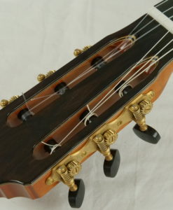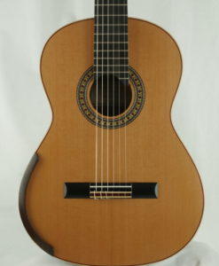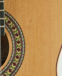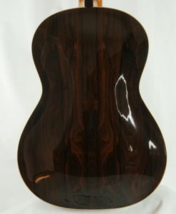 Es handelt sich um eine Gittergitarre mit einem gewölbten Boden und Zargen, die geschichtet sind, um eine steifere Form zu erhalten und die Verwendung von Innenholz im Inneren zu vermeiden, das die Gitarre zu schwer macht. Die Gitarre ist mit 1,940 kg ziemlich leicht.