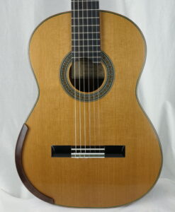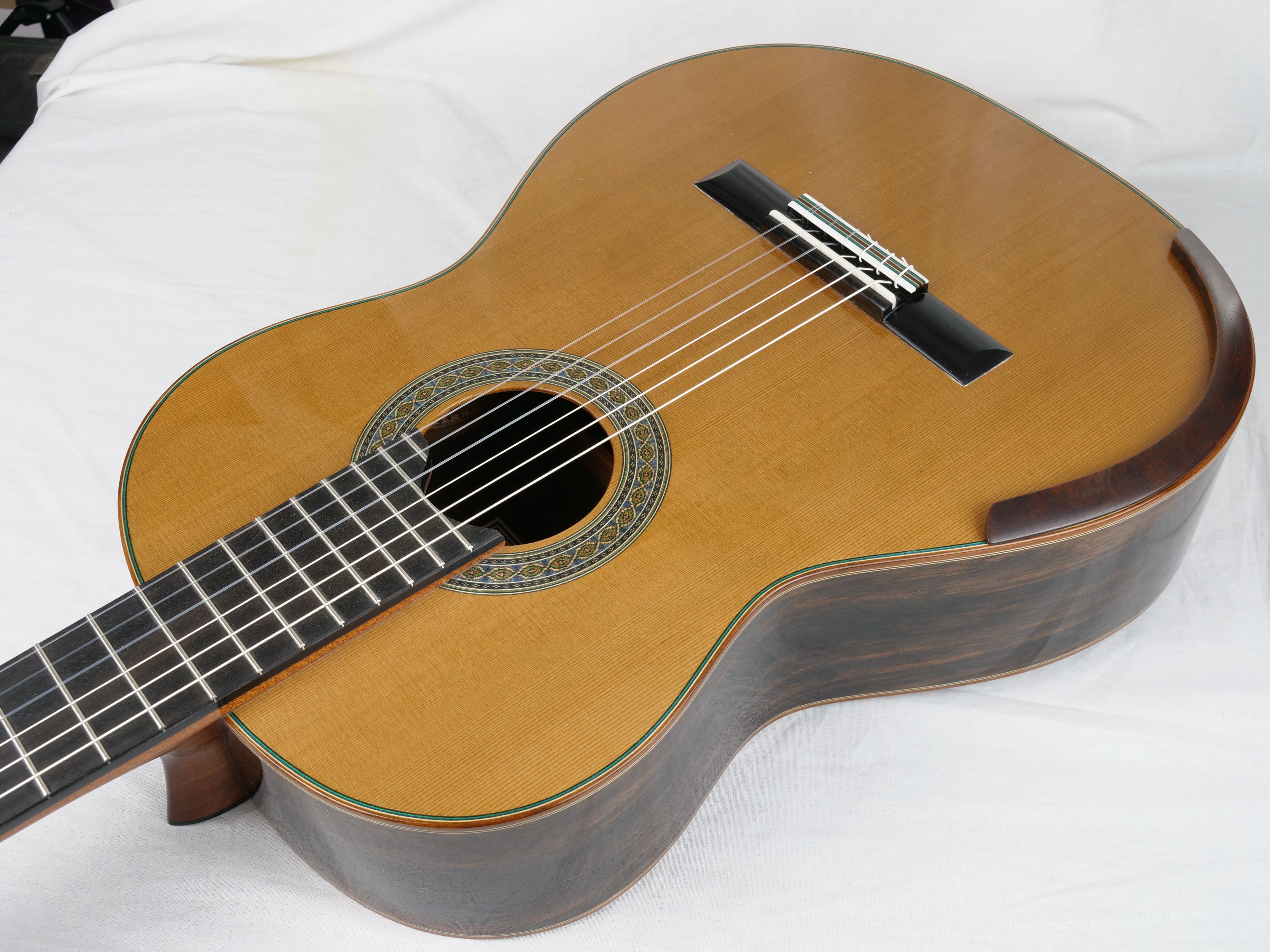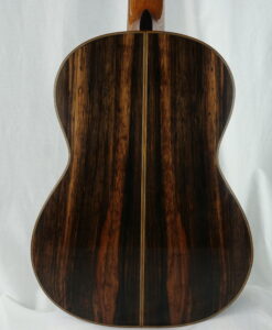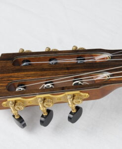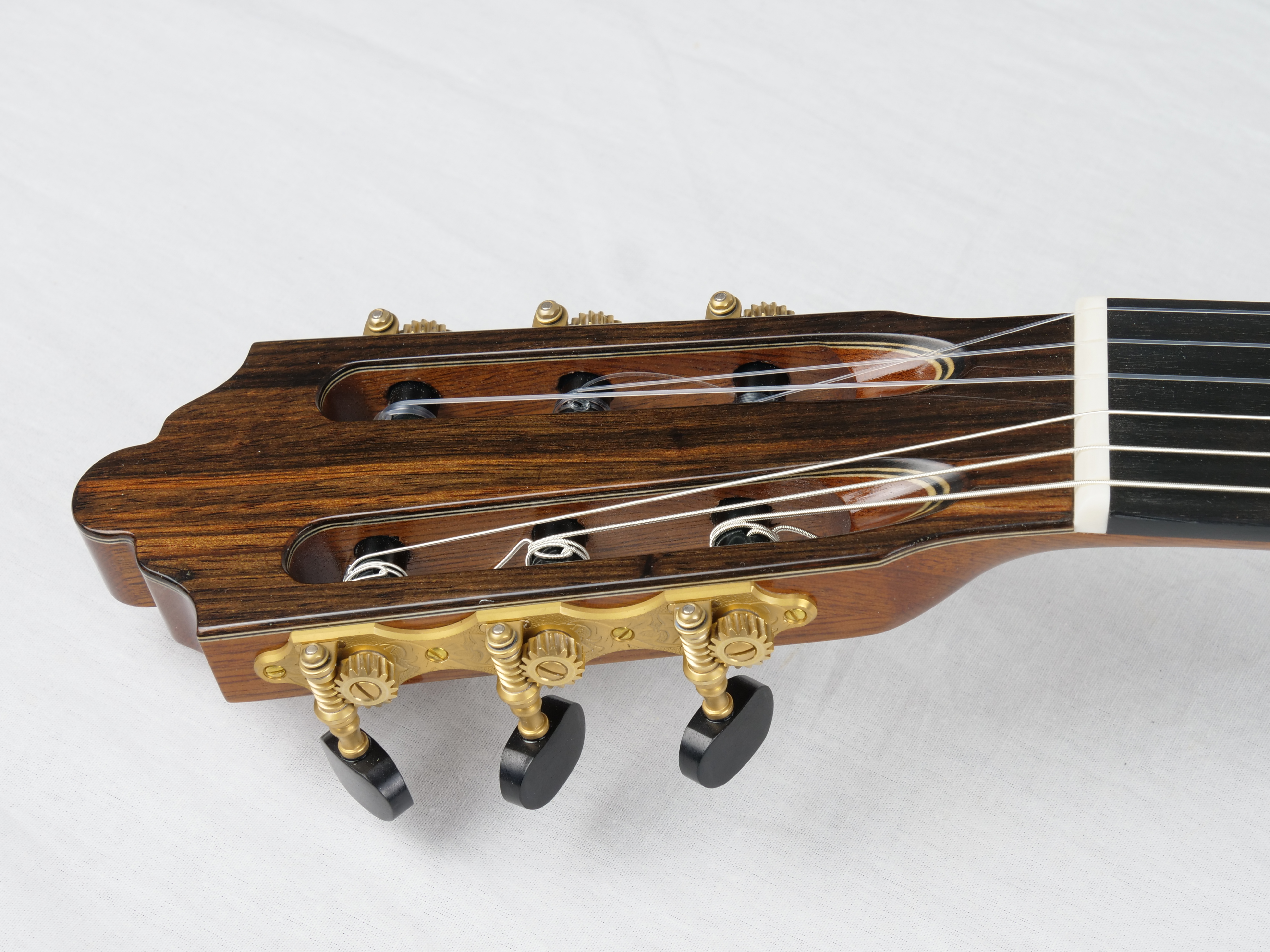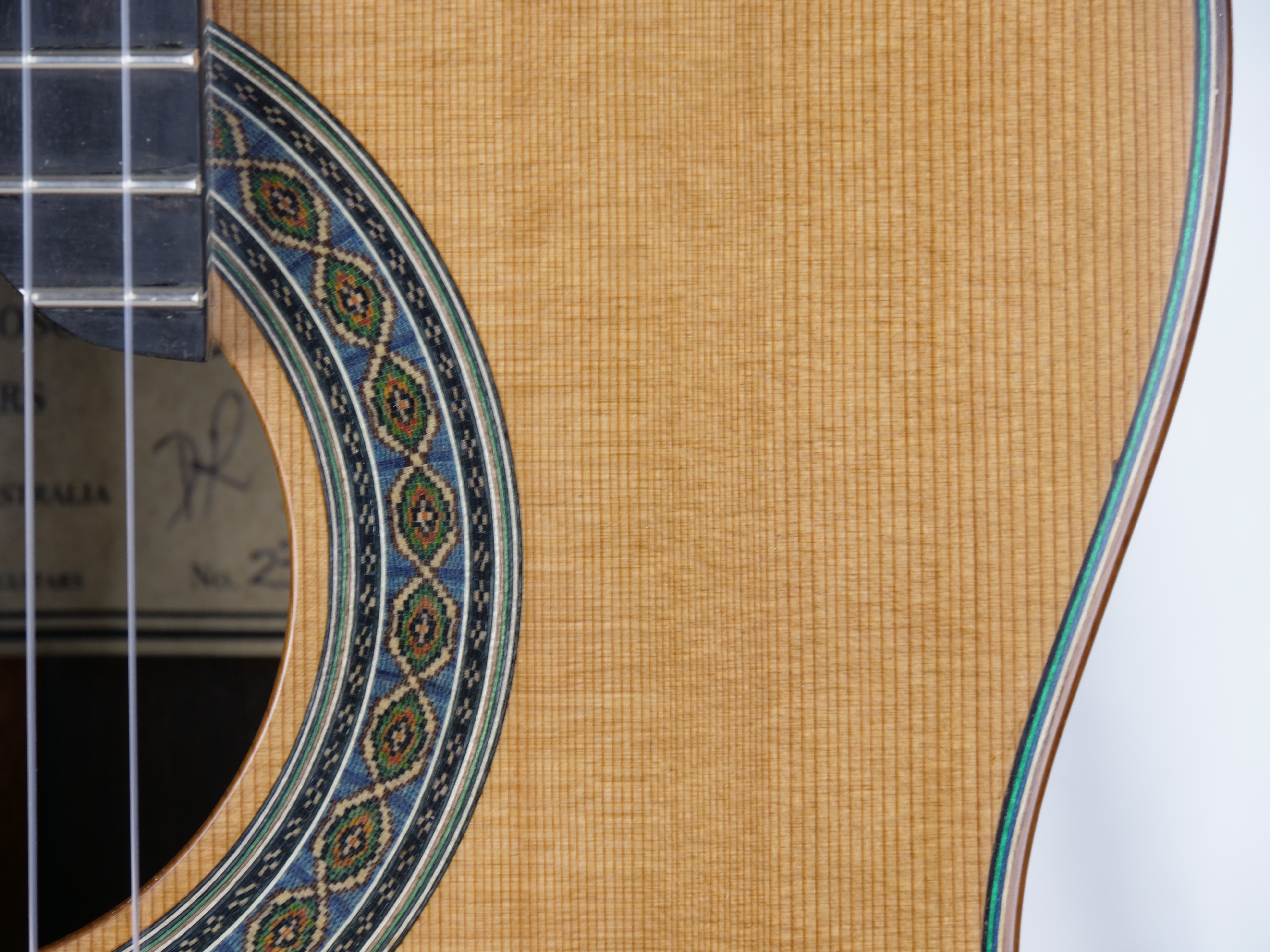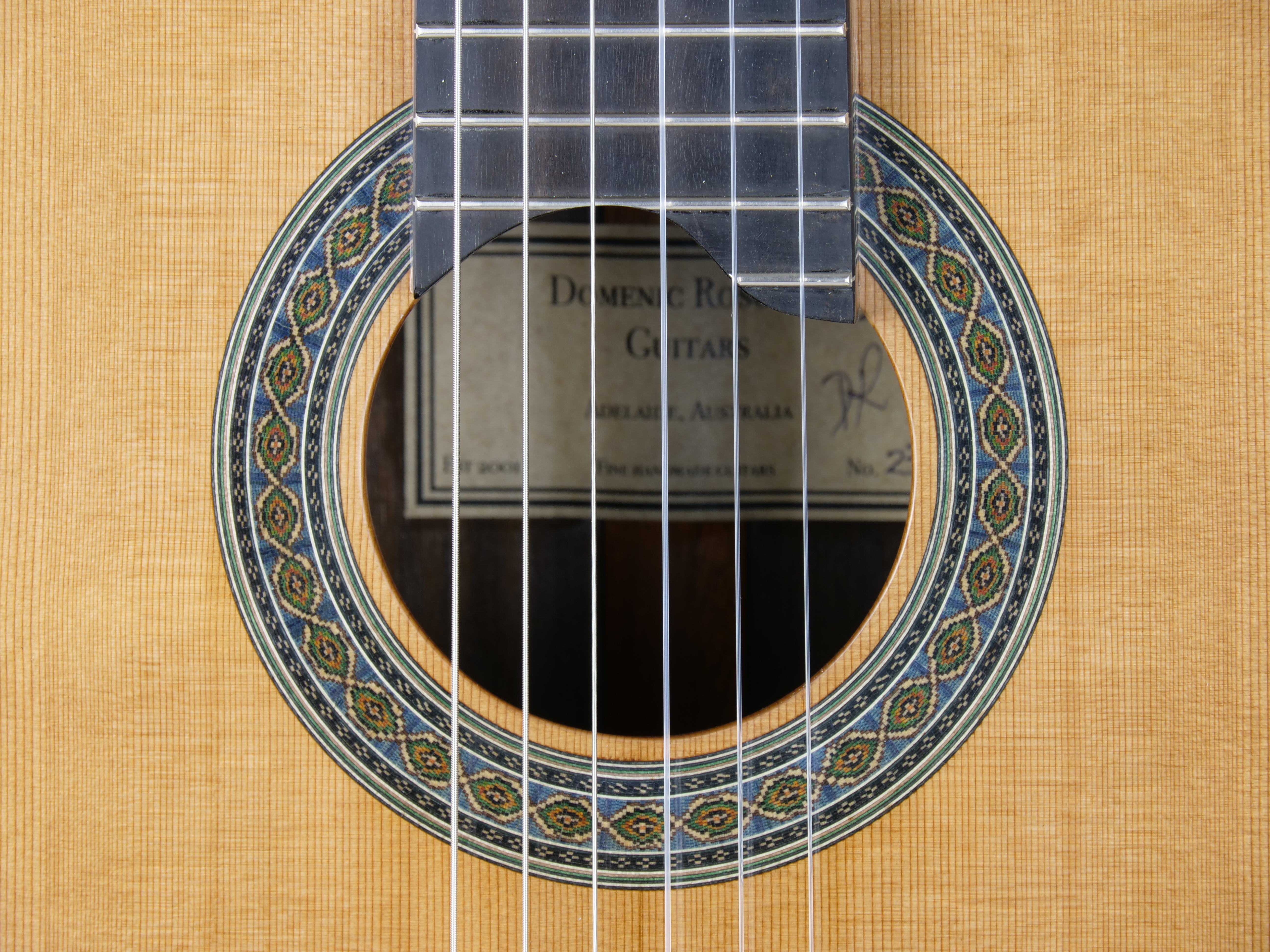 Domenic baut auch Fleta-Nachbauten und achtet bei allen seinen Gitarren, einschließlich seiner Lattice-Gitarren, sehr auf die Klangqualität. Seine Fähigkeiten entwickelte er mit dem großen Jim Redgate, der sein Mentor wurde und ihn in die Geheimnisse des Gitarrenbaus mit Gitarrengittern einweihte. Seine Gitarren teilen daher viele Prinzipien mit denen von Jim. Jim Redgate war vor zwei Jahren bei uns, und als wir ihn fragten, welchen Gitarrenbauer er empfehlen würde, antwortete er uns Domenic Roscioli. Dem ist nichts hinzuzufügen.