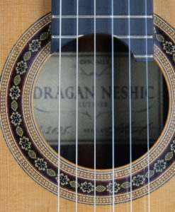 Diese Gitarre ist eine Doppeldecke mit Nomex Especial Model. Die Gitarre bietet einige besondere Verbesserungen – Dekoration, exklusive Rosette und die Wahl eines Holzes der Meisterklasse – und ist eine limitierte Auflage für das Paganini-Gitarrenfestival 2025. Das Madagaskar-Palisanderholz ist von erstaunlicher Schönheit.