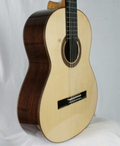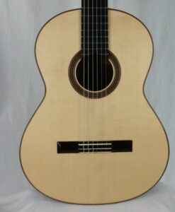 François Régis Léonard hebt sich von den französischen Gitarrenbauern ab, die insgesamt eher traditionell bleiben. Hier ist die neueste Gitarre von François Régis Léonard, die Tradition und Moderne mit einem traditionellen Klang verbindet, der durch eine Verstrebung ohne Kohlenstoff und Balsa verstärkt wird, was dieser Gitarre eine schöne Dynamik und Klangfülle verleiht. François-Régisa hat die Struktur seiner Decke verändert, um seiner Gitarre einen volleren und vollmundigeren Klang zu verleihen. Diese Entwicklung ist bedeutend und macht François Régis Léonard zu einem der besten französischen Gitarrenbauer der Gegenwart.