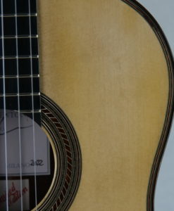 Gerardo Centonze ist ein 36-jähriger Gitarrenbauer, der traditionelle Gitarren baut, die von spanischen Gitarren (Torres) inspiriert sind, aber eine ganz italienische Persönlichkeit haben: Kraft, Rundung und Ausgewogenheit. Unter den rund 60 Gitarrenbauern, die auf der Roma Expo Guitars vertreten waren, fiel uns Gerardos Limited Edition Gitarre wegen ihres schönen Klangs und ihrer leichten Spielbarkeit auf. Sie ist rund, kraftvoll und makellos.