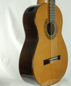 Die Gitarre eines Gitarrenbauers, um die sich alle Stars der klassischen amerikanischen Gitarre reißen: Glenn Canin. Die Nr. 180 hat uns wieder verblüfft: Kraft und Musikalität mit einem unglaublichen Gleichgewicht zwischen Klarheit und Rundung! Wir haben für den Boden und die Zargen ein Malaysian Blackwood gewählt, das uns den Bass zu verstärken schien.