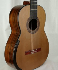 Greg Smallman ist seit vielen Jahren einer der wichtigsten Innovatoren in der Welt des Konzertgitarrenbaus. Die Gitarren von Greg Smallman & Sons sind wie keine andere klassische Gitarre. Sie sind außergewöhnlich kraftvoll und reagieren auf einen leichten Anschlag; diese Gitarre füllt den Raum mit tiefen und komplexen Klängen. Sie behält bei voller Lautstärke eine wunderschöne, üppige Stimme, ohne Verzerrung oder Fett. Greg erreichte diesen Klang durch radikale Veränderungen am inneren Aufbau der Gitarre, indem er Lattendämme und Kohlefaser in Kombination mit einem unglaublich dünnen Resonanzboden verwendete.