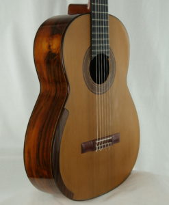 Greg Smallman ist seit vielen Jahren einer der wichtigsten Innovatoren in der Welt des Konzertgitarrenbaus. Die Gitarren von Greg Smallman & Sons sind wie keine andere klassische Gitarre. Sie sind außergewöhnlich kraftvoll und reagieren auf einen leichten Anschlag; diese Gitarre füllt den Raum mit tiefen und komplexen Klängen. Sie behält bei voller Lautstärke eine wunderschöne, üppige Stimme, ohne Verzerrung oder Fett. Greg erreichte diesen Klang durch radikale Veränderungen am inneren Aufbau der Gitarre, indem er Lattendämme und Kohlefaser in Kombination mit einem unglaublich dünnen Resonanzboden verwendete.