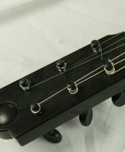 Griffbrett, Steg, Kopfplatte, Binding und Rosettenverstärkung aus afrikanischem Ebenholz (Diospyros Crassiflora, Cites ok). *Verbindungsstück zwischen Zargen und Boden (Ebenholz/Mahagoni Bubinga -Guibourtia Demeusei, Cites ok).