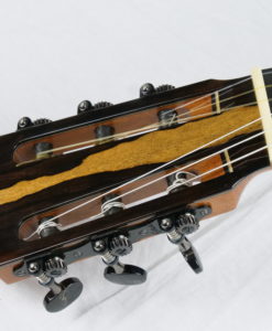 Japan ist bekannt für seine Gitarrenbauer, die fast alle Gitarren bauen, die vom traditionellen spanischen Gitarrenbau inspiriert sind. Hiroyasu Asakura ist einer der wenigen japanischen Gitarrenbauer, der moderne Gitarren entwirft, die von den australischen Gitarrenbauern Greg Smallman & Sons, Simon Marty und dem Amerikaner John Gilbert inspiriert sind. Der radiale Damm und die starke Struktur von Boden und Zargen verleihen der Gitarre Kraft, Klarheit, Stimmtrennung und eine erstaunliche Länge des Tons. Die Klangfarbe ist kristallklar und magisch. Leicht zu spielen mit einem traumhaften Geigenbau … auf japanische Art. Unser neuester Favorit.