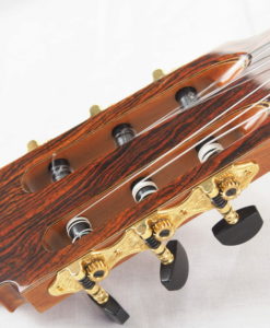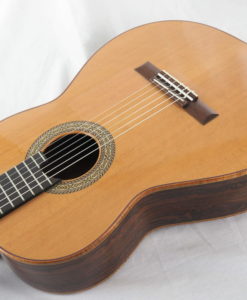 Wenn man sich zwischen mehreren Gitarren entscheiden müsste: Sie wäre die erste Wahl. Eine ausgeglichene lattice-Gitarre mit erstaunlichen musikalischen Qualitäten, 2,2 Kilogramm schwer, mit breitem Tonspektrum , warmen, zarten Höhen und voluminösem Bass. Was zuerst auffällt an ihr ist die Flexibilität bei der Tonbildung, die ein zartes « piano » genauso problemlos zulässt wie ein « forte ». Sie ist reich an Kontrasten und Tonfarben.