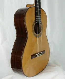 Mario Aracama repräsentiert die junge Generation von Gitarrenbauern aus Granada und baut Gitarren, die wir als ‘Modern Traditional’ bezeichnen. Sie sind die perfekte Fortsetzung der Gitarren aus Granada, aber mit einer beeindruckenden Dynamik, die dem Gitarristen noch mehr Freude bereitet. Seine Gitarren sind so kraftvoll wie eine Doppeldecke mit einem traditionellen, fleischigen Klang. Das Geheimnis: Mario fertigt seine Decken zwei Jahre vor der Gitarre an, und sie werden mehrfach gespannt, um die Resonanz zu erhöhen. Die Zederndecke sorgt für zusätzliche Klangdichte.