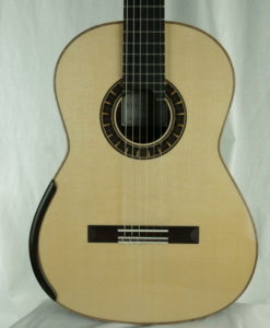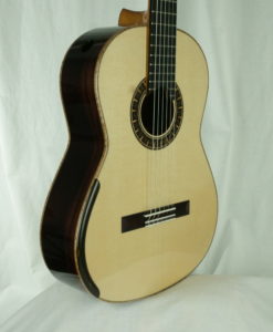 Die Gitarren von Martin Blackwell gehören zu den begehrtesten auf dem Markt. Martin Blackwell hat mehr als 7 Jahre auf diese Gitarren gewartet. Sie werden von den größten Gitarristen gespielt – Gabriel Bianco, Tariq Harb, Evan Taucher -. Diese Ausgabe Nr. 242 ist eine Sonderanfertigung mit einer Fichtendecke und einem Palisander aus Magaskar, die den Klang verdichten und klären. Die Qualität des Holzes bietet eine beeindruckende Dynanik mit einer traditionellen Farbe. Kraft, Klangqualität und leichte Spielbarkeit zeichnen Martins Gitarren aus.