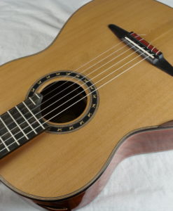 Hier ist wieder einmal eine auffällige Zederndecke Doubletop Gitarre von Max. Die Gitarre sieht nicht nur wunderschön aus, sondern klingt auch wie ein Traum. Hier ist wie üblich eine Zedern-DT, die sich sehr von den üblichen deutschen DT-Gitarren unterscheidet. Die Gitarre ist sehr leicht, mit einer Decke aus 2 Scheiben Zeder/Fichte (nicht 3 Scheiben wie bei der normalen DT). Für den Boden und die Zargen hat Max ein attraktives Set aus Cocobolo und Paduk -Rosewood gewählt. Der Klang ist groß und die Spielbarkeit ist erstaunlich. Schauen Sie sich das Review-Video an. Übersetzt mit www.DeepL.com/Translator (kostenlose Version)