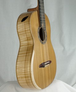 Die Gitarre ist viel näher an einer traditionellen Gitarre und von einer DT. Max ist ein Erbauer mit einer starken Persönlichkeit und das Design der Gitarre und die Holzauswahl sind einmalig.