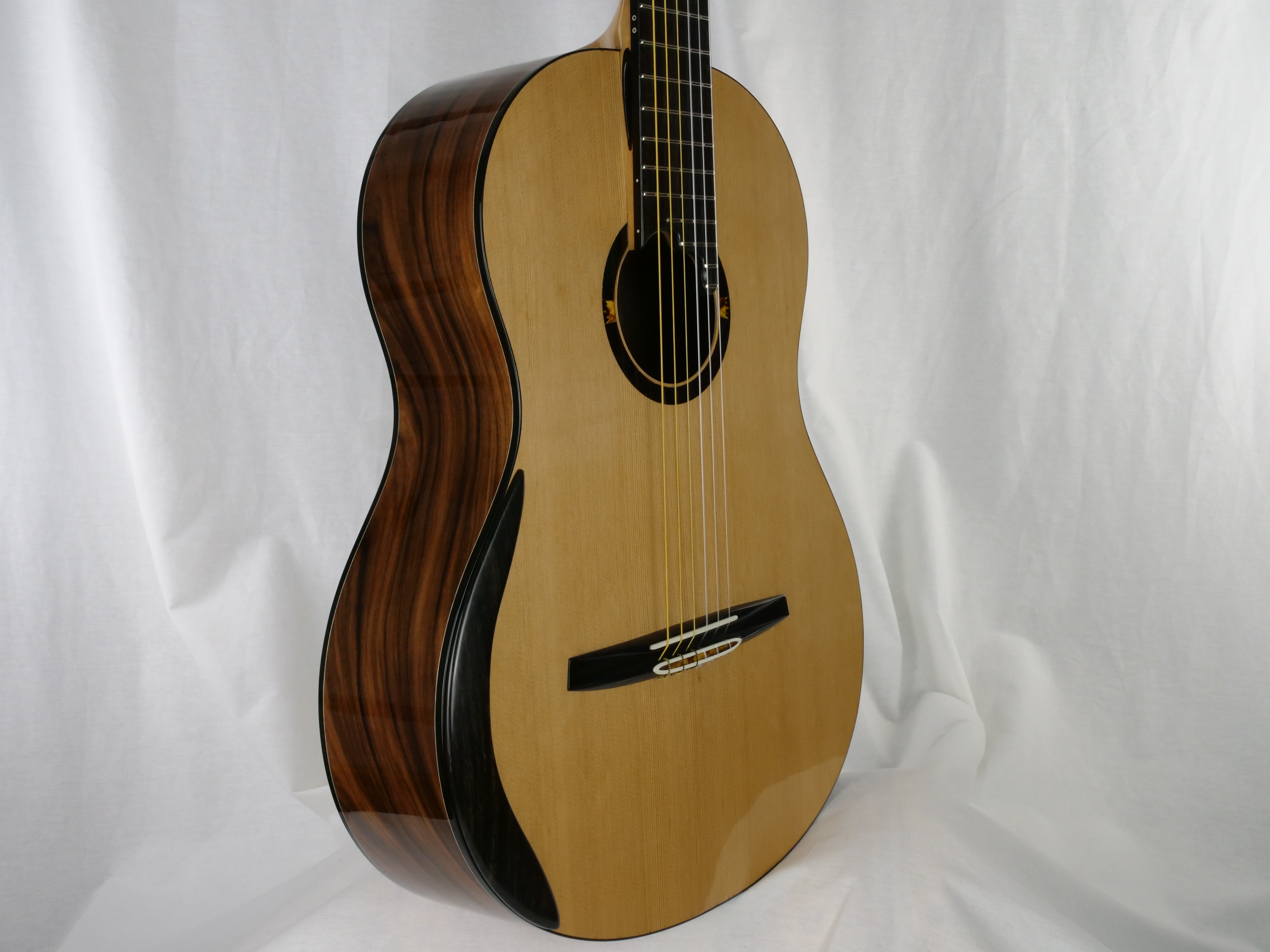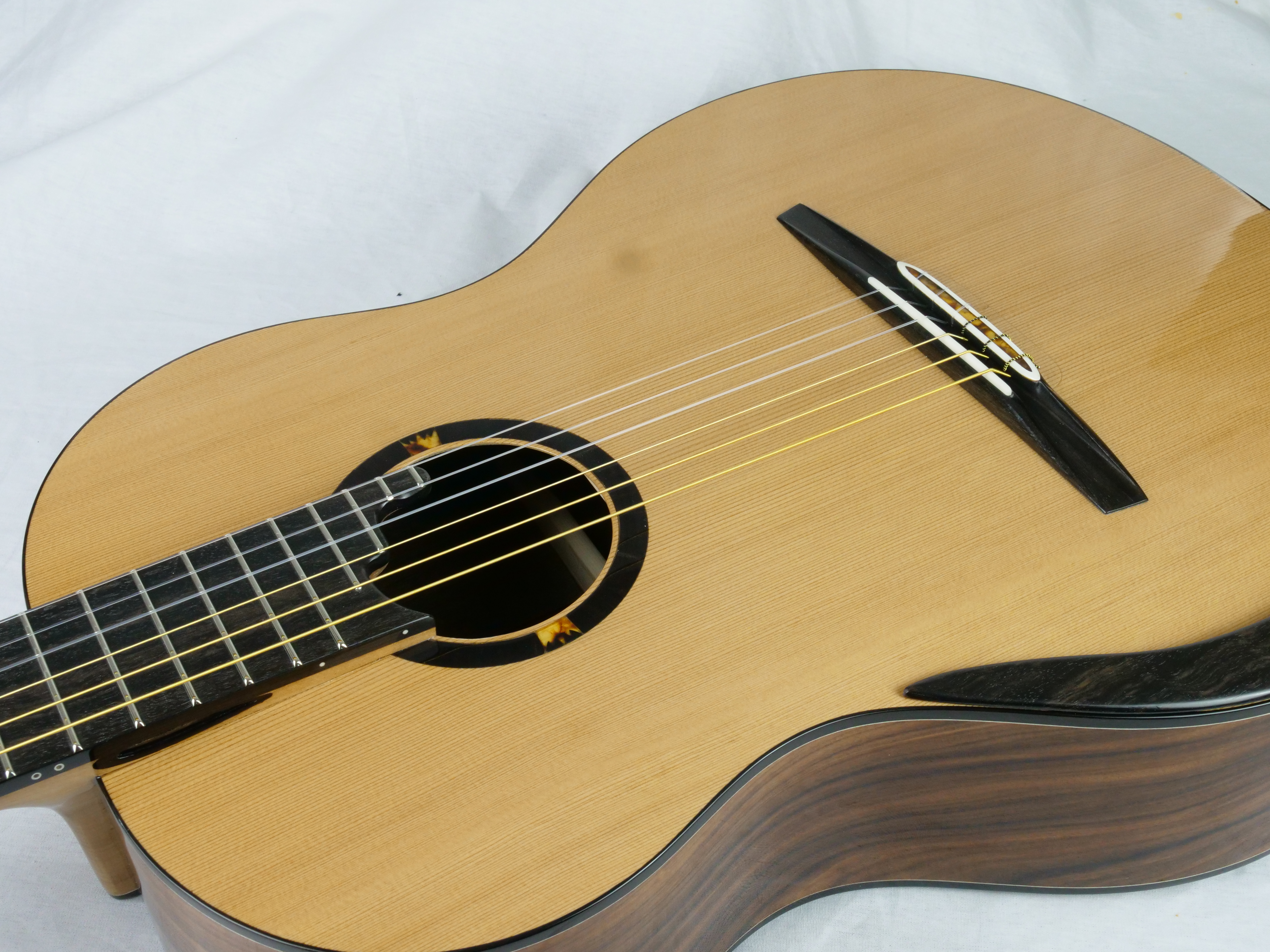 Diese Gitarre Nr. 729 bietet den traditionellen umwerfenden Look der Turkowiak, jedoch mit einer erhöhten Klangdichte und einer eleganten Rundheit. Die Gitarre bietet schöne Klangfarben und eine bemerkenswerte Kraft. Der Spielkomfort ist erstaunlich, zweifellos einer der am leichtesten zu spielenden Hälse. Eine große Doppeldeckplatte mit atemberaubender Ästhetik, ein bezaubernder Klang zu einem unschlagbaren Preis.
