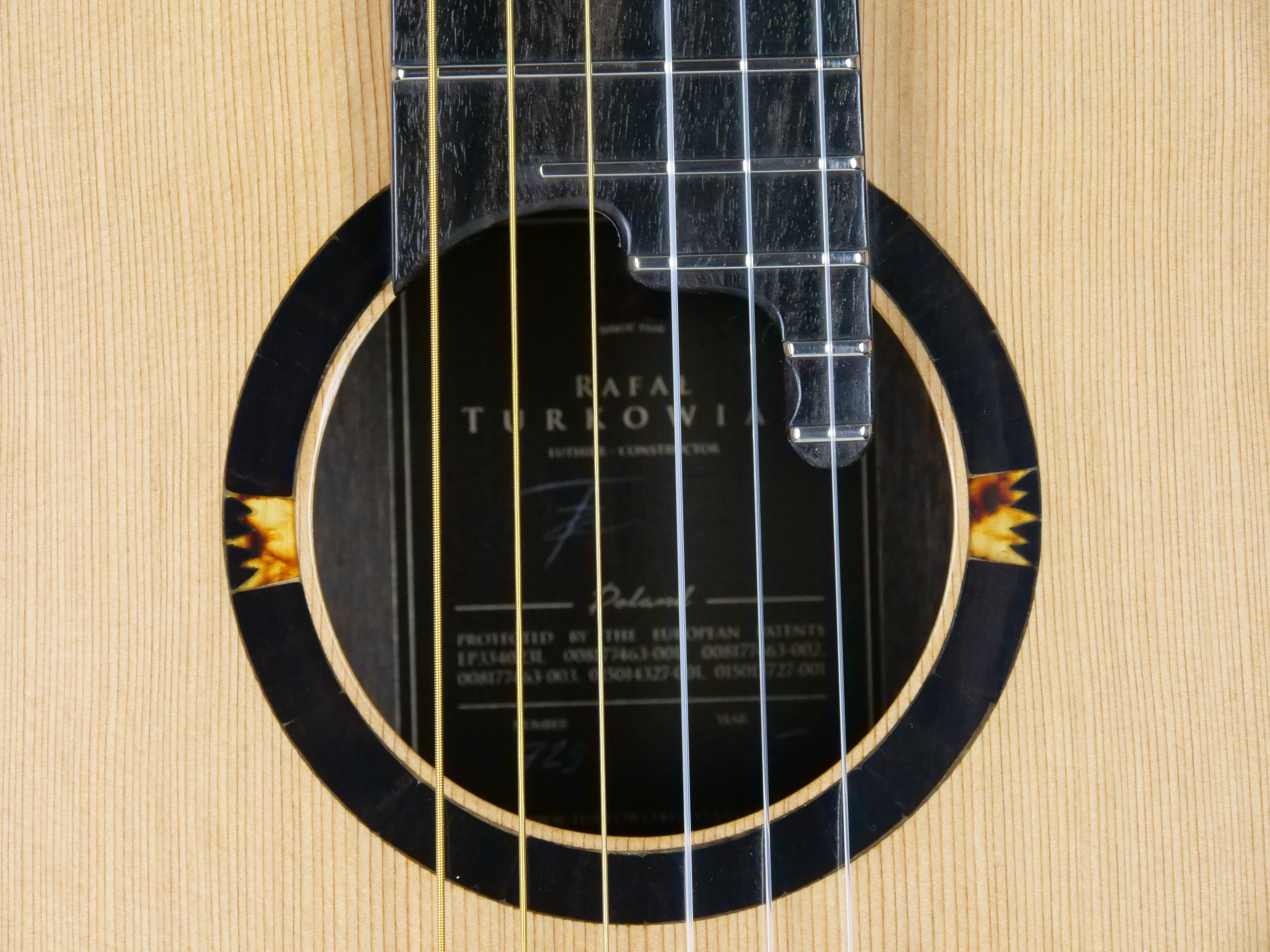 Im Jahr 2022 hatten wir eine Turkowiak „Queen of the Guitar” vorgestellt, die uns ziemlich überrascht hat. Im Jahr 2023 haben wir Rafal und sein Team gebeten, seine Gitarren vorab zu testen und mit unseren verfügbaren Double-Table- und Lattice-Gitarren zu vergleichen. Sie haben alle unsere Gitarren eingehend analysiert und sich die klanglichen Unterschiede angehört. Ein Jahr später wurden Rafals Gitarren überarbeitet und verbessert. Die Innovationen, die den Charakter der Turkowiak ausmachen, sind nach wie vor vorhanden.