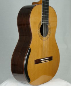 Für dieses neue Australe-Modell – ein Modell, das von Greg Smallmans Gitarren inspiriert ist, aber einen französischen Touch hat – hat Régis einige neue Features implementiert, um etwas Wärme und Klangstärke zu gewinnen. Diese Sonderbestellung ist ein Erfolg: die Gitarre ist laut und bietet einen warmen Ton. Die Decke ist aus Zedernholz und hat eine Holzzarge darunter. Die Zargen sind laminiert und der Boden ist ebenfalls verstrebt. Die Bespielbarkeit ist erstaunlich mit einem sehr dünnen Hals. Erstaunlich und ein großes Vergnügen für den Spieler.