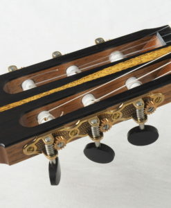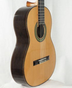 Kraft, Gleichgewicht, fruchtige Höhen, eine herrliche Trennung der Töne und ein eher langes Sustain für eine Double-Top. Seine Hölzer und seine Handwerkskunst stammen von Matthias Dammann. Die Freude beim Spielen ist enorm und die Gitarrenbauerarbeit perfekt. Beim Probespielen bei uns im Studio schloss ich die Augen und eine Sekunde lang dachte ich, David Russell sei da und spiele, so ähnlich war der Klang dem einer klassischen Gitarre von Matthias Dammann. Welch großes Glück wir haben.