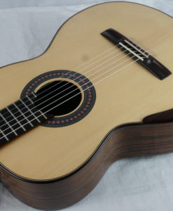 Eine Gitarre, die der von Simon Marty ähnelt: eine wunderbare Klangdefinition. Eine Konzertgitarre, die den Gitarren von Simon Marty ähnelt, mit dem er lange zusammengearbeitet und den berühmten radialen Dämpfer entwickelt hat, eine der beliebtesten Konzertgitarren des Teams, ein wunderschöner Gitarrenbau und ein atemberaubend langes Sustain.