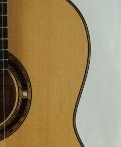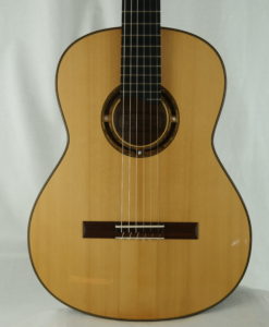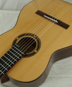 Hier ist, wie Thomas seine Gitarre beschreibt: « Ein kraftvoller Klang, warme, singende Höhen, schnelle Ansprache, exzellente Selektivität, kurzum: alles, was man braucht, um einen Konzertsaal mit seinem Klang zu füllen. Ich verwende nur luftgetrocknetes Holz, das mindestens zehn Jahre alt ist, manche sogar 20 oder mehr. Wie eine Membran muss der Resonanzboden in der Lage sein, die Schwingungen der Saiten in ausgewogener Weise zu verstärken und abzustrahlen. Zu diesem Zweck wird die Decke je nach Holzart und Stärke unterschiedlich stark bearbeitet und mit einer Innenverstrebung versteift, um der Spannung der Saiten standzuhalten. »