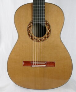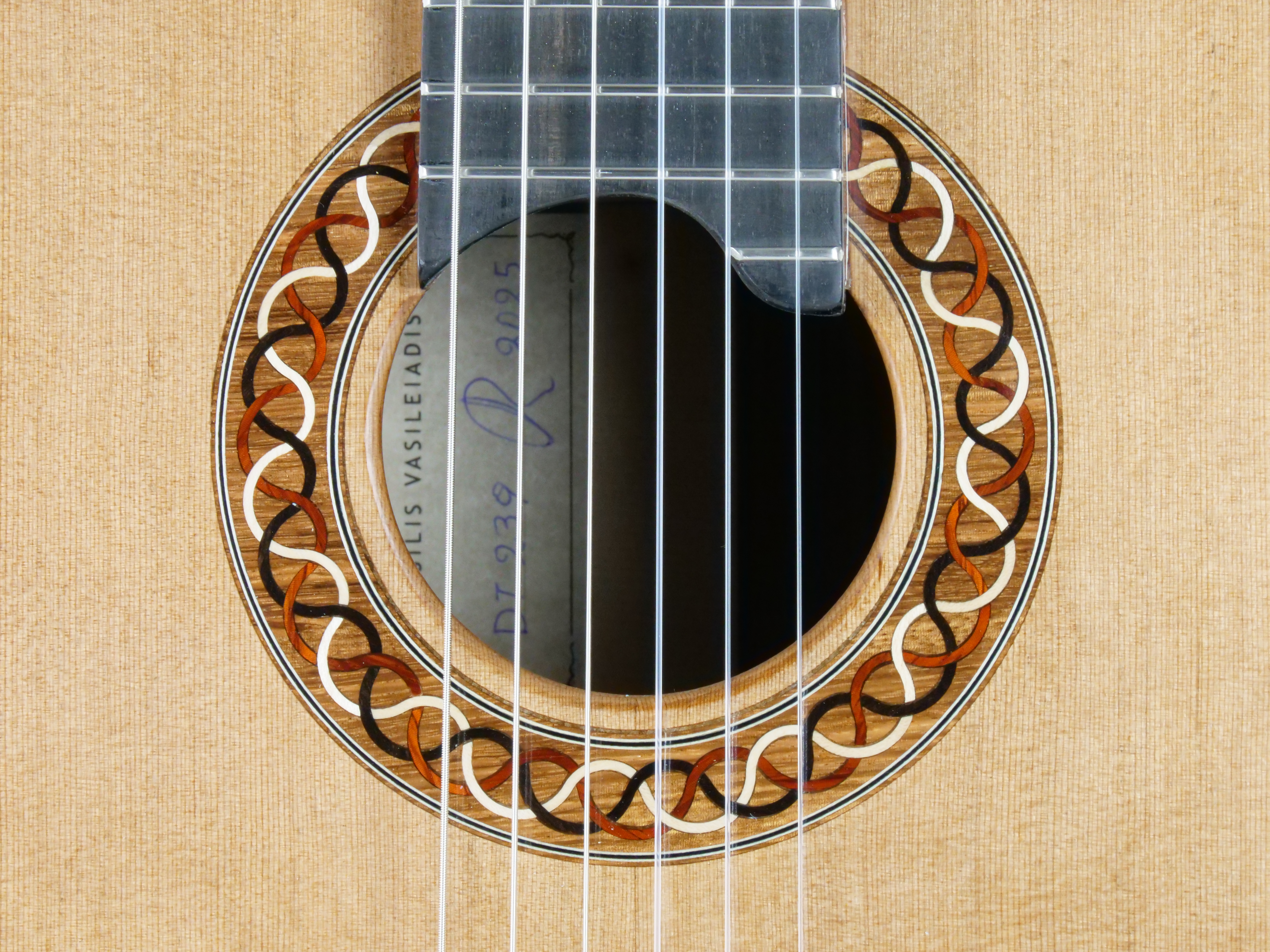 Diese neue Gitarre Nr. 239 hat eine doppelte Nomex-Decke – Vasilis verwendet Nomex seit der Gitarre Nr. 170. Das Design wurde modernisiert, vor allem aber wurde die Verstrebung überarbeitet und an die der Fleta-Gitarren angelehnt. Das Ergebnis: Die Gitarre hat an Rundheit und Wärme gewonnen und gleichzeitig ihre beeindruckende Dynamik, ihr Sustain und ihre harmonischen Resonanzen beibehalten. Das Duo Melis – bestehend aus der spanischen Gitarristin Susana Prieto und dem griechischen Gitarristen Alexis Muzurakis – war von den neuen DT-Gitarren von Vasilis begeistert und spielt nun auf zwei Vasileiadis.