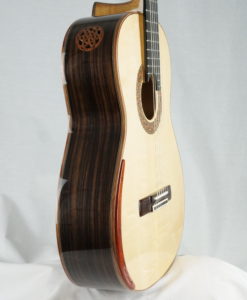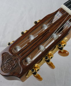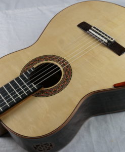 Die neue Gitarre Nr. 182 ist eine doubletop, die Nomex verwendet, was für Vasilis seit der Gitarre Nr. 170 eine Neuheit ist. Das Ergebnis: Die Gitarre hat an Dynamik gewonnen, mit mehr Kraft, Sustain und harmonischen Resonanzen. Man findet das, was Vasilis’ Markenzeichen ist: einen runden, warmen Klang. Ein erstklassiger Gitarrenbau und ein schöner Klang wie gewohnt! Vasilis misst auf klanglicher Ebene alle Elemente der Konstruktion, um auf die richtige Frequenz zu kommen. Die Videobesprechung dieser DT Nomex wird Mitte Januar verfügbar sein. In der Zwischenzeit finden Sie die Videobesprechung der Nr. 178, die wir zuvor erhalten haben… Wir müssen zugeben, dass wir die DT-Gitarren von Vasilis als gleichwertig mit den besten deutschen DTs betrachten.Doppelte Decke: Fichte/ Nomex/ ZederRücken und Zargen aus indischem Palisander und Dubbing aus afrikanischem Mahagoni – Khaya ivorensis.Griffbrett aus afrikanischem EbenholzFrench Shellac – Stempellack- für die Decke und synthetisches Öl für den Korpus.Mechanik: Grover 306G Delux Hauser Gold
